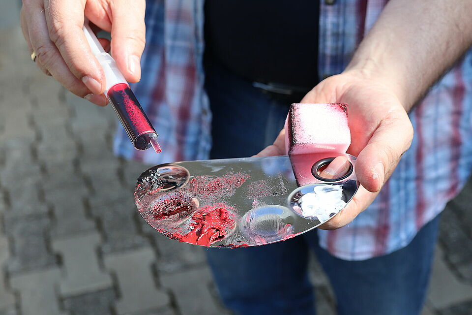 Im Grundkurs Notfalldarstellung wird gelernt, wie man täuschend echte Wunden schminkt und Unfälle überzeugend mimt.